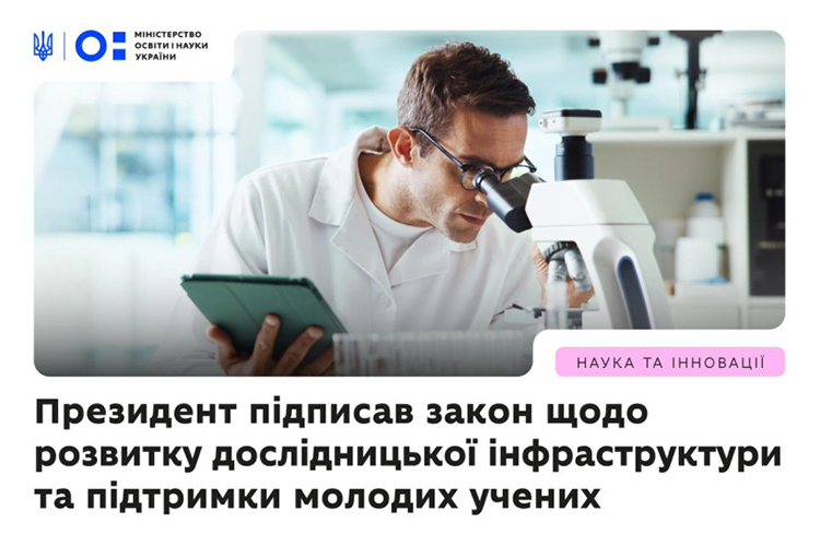Президент України підписав Закон України «Про внесення змін до Закону України “Про наукову і науково-технічну діяльність” щодо питань дослідницької інфраструктури та підтримки молодих учених» (№10218).