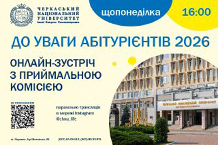 У квітні проходять традиційні онлайн-зустрічі для абітурієнтів із приймальною комісією Черкаського національного університету імені Богдана Хмельницького.