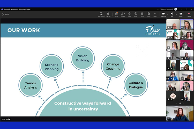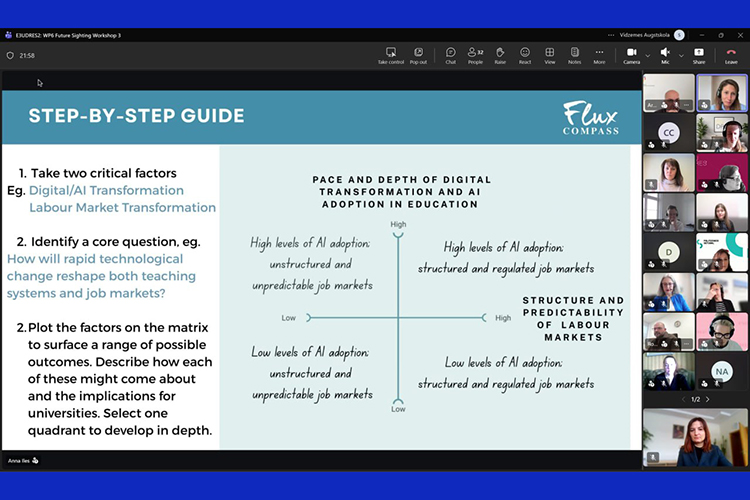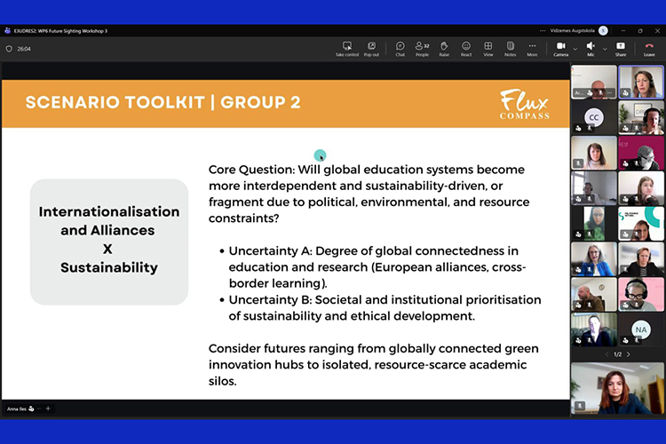 Захід об’єднав 32 стратегів із 12 інституцій-партнерів альянсу з метою спільного осмислення можливих сценаріїв розвитку європейської вищої освіти до 2036 року. Фасилітаторкою воркшопу стала Анна Айлес — коуч із питань майбутнього для лідерів і стратегів сталого розвитку, директорка компанії «Flux Compass» (Гонконг).