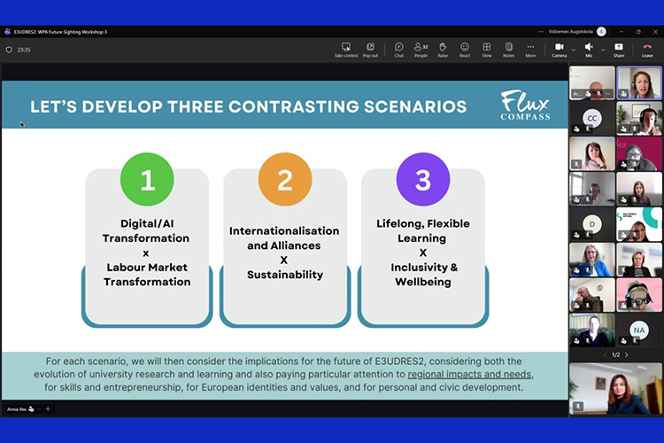 У четверту річницю повномасштабного вторгнення росії в Україну, 24 лютого представники Черкаського національного університету імені Богдана Хмельницького взяли участь в онлайн-воркшопі «Спільне створення сценаріїв 2036 року для вищої освіти в Європі» («Future Sighting Workshop 3: Future Scenarios»), організованому в межах діяльності Європейського університетського альянсу E³UDRES².