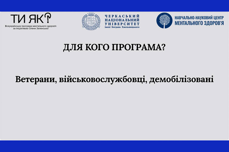 Особливе зацікавлення викликала ветеранська сертифікатна програма «Рівний — Рівному». За сприяння Координаційного центру, в межах Всеукраїнської програми ментального здоров’я Ти як? — ініціативи першої леді Олени Зеленської – понад рік тому почалося формування засад для створення та впровадження нової навчальної програми, що відповідала б світовим стандартам принципу «Рівний — Рівному» на базі КНУ імені Тараса Шевченка. У березні цього року з березня розпочинають навчання консультантів за принципом «Рівний – Рівному» Черкаський національний та ще два ЗВО. Юлія Олександрівна представила навчальну програму, яка ґрунтується на взаємодопомозі людей зі схожим досвідом. Після отримання спеціалізованих знань по роботі з бойовою травмою, щодо превенції залежностей та проблем з ментальним здоров'ям консультанти допомагатимуть іншим ветеранам/ветеранкам і військовим, зокрема й підтримкою на шляху до звернення до фахівця.