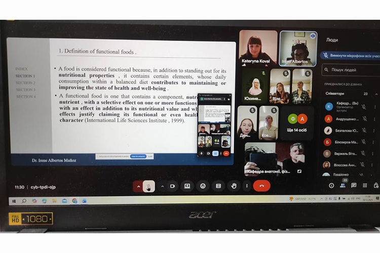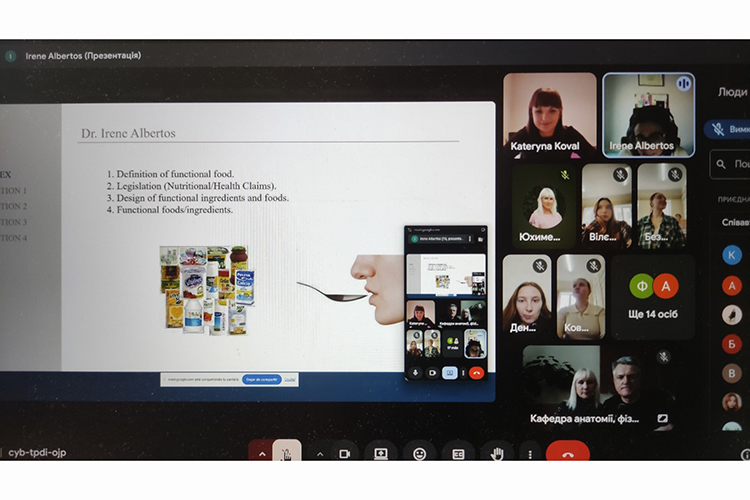 Лекторка ознайомила аудиторію із важливими сучасними поглядами на функціональне харчування, як такого, що допомагає організму не тільки триматися у нормі, але й покращувати здоров’я, впливаючи на психологічний і фізіологічний стан. Висвітлено питання, пов’язані з видами функціональних продуктів, що разом з виконанням енергетичної функції та поліпшення самопочуття, ще й знижують ризик розвитку різноманітних захворювань. Докторка Ірен Альбертос застерегла від оманливої та незрозумілої реклами, заснованої на напівправді, плутанинах в етикетках, недостатній концентрації біологічно активних інгредієнтів в їжі.