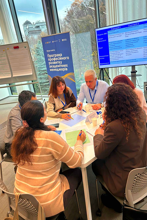 Завершився модуль командною роботою над практичним завданням і підбиттям підсумків — учасники узагальнили отримані знання та визначили підходи, які можуть бути інтегровані в розвиток ЧНУ вже найближчим часом. Такий формат дозволив не лише засвоїти теоретичні основи, а й отримати практичні навички для реалізації стратегічних ініціатив у власних закладах.