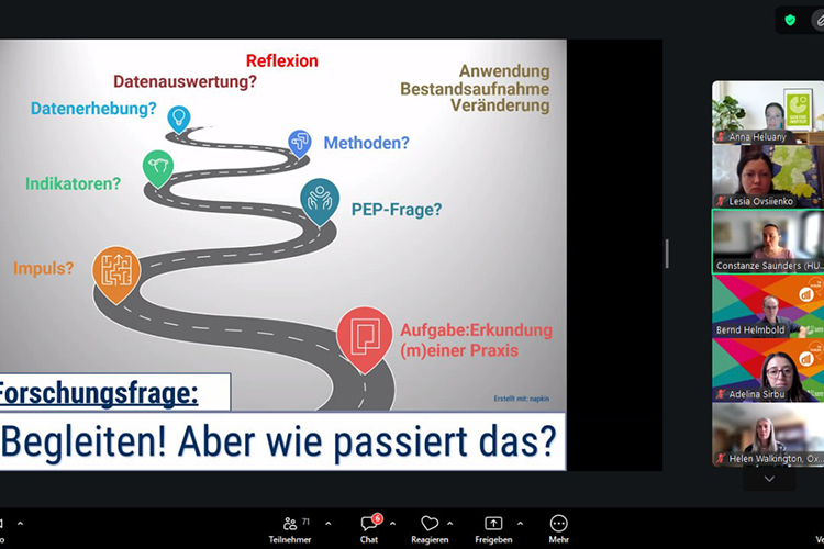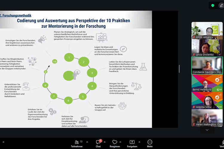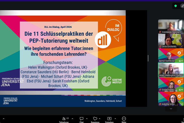 Особливу увагу було приділено тьюторському супроводу практично-дослідницького проєкту (PEP), а також ключовим методам і підходам, які використовують тьютори DLL у своїй професійній діяльності. Теоретичною основою для обговорення слугувала новітня наукова праця, видана на основі опитувань тьюторів по всьому світу: Walkington, H., Saunders, C., Helmbold, B., Schart, M., Ebid, A. & Frodsham, S. (2025). «Salient practices in mentoring teachers as researchers: the Goethe-Institute's German as a foreign language continuing professional development programme». Zeitschrift für Bildungsforschung.