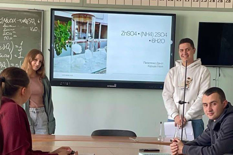 Для студентів Черкаського національного університету імені Богдана Хмельницького студентами спеціальності 102 «Хімія» було проведено 12 листопада 2025 року було проведено науково-хімічний гурток на тему «Синтез неорганічних речовин».