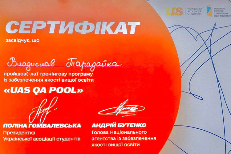 Після завершення навчання студенти отримали сертифікати. Цей тренінг став для них цінним і корисним досвідом, що сприятиме подальшому професійному розвитку та розумінню процесів забезпечення якості вищої освіти.