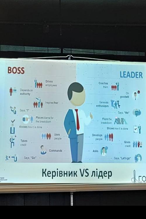 Захід був спрямований на формування сучасного молодіжного лідерства та розвиток навичок, необхідних для участі у громадсько-політичному житті країни. Тренерка Тетяна Федорів ознайомила студентів з інструментами ефективної комунікації, прийняття рішень, командної взаємодії, а також із практичними аспектами молодіжної політики в Україні. Наповнила практичним змістом моделі командних ролей, «прокачала» інтегральне та трансформаційне лідерство в команді. Особливо динамічною була частина тренінгу з Наталею Процюк, яка виклала в формі інтерактивної гри стратегії комунікації та взаємодії всередині громадської організації.