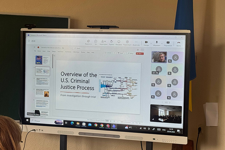 Тема лекції — «Overview of the U.S. Criminal Justice Process». Захід відбувся в дистанційному форматі та об'єднав слухачів усіх курсів юридичного напряму підготовки, ставши черговим кроком у розвитку міжнародного наукового та освітнього партнерства університету.