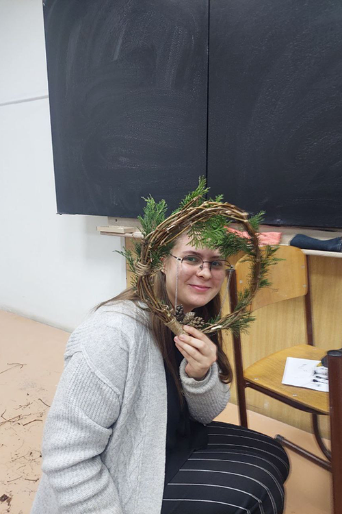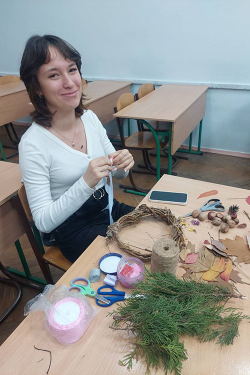 Психологиня, доцентка кафедри педагогіки й психології Черкаського національного університету імені Богдана Хмельницького Інна Герасимова 18 листопада провела майстер-клас з арттерапії, в основі якого плетіння з лози.