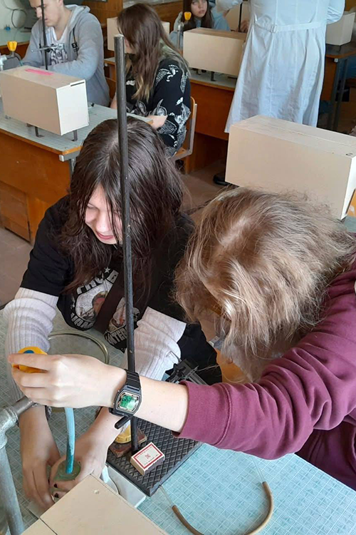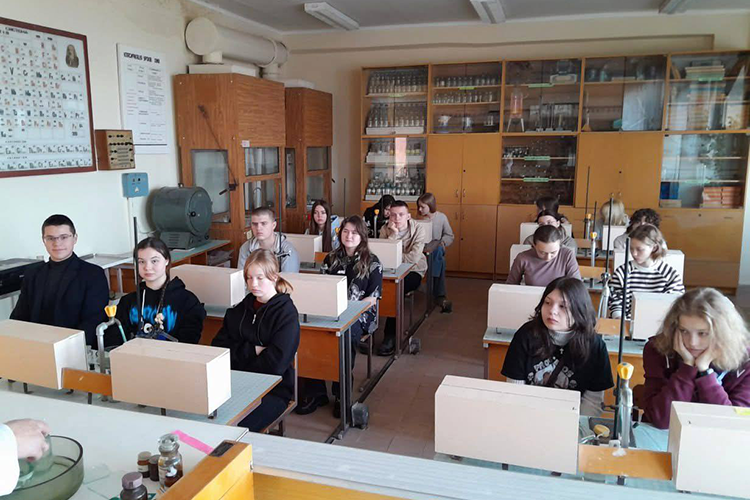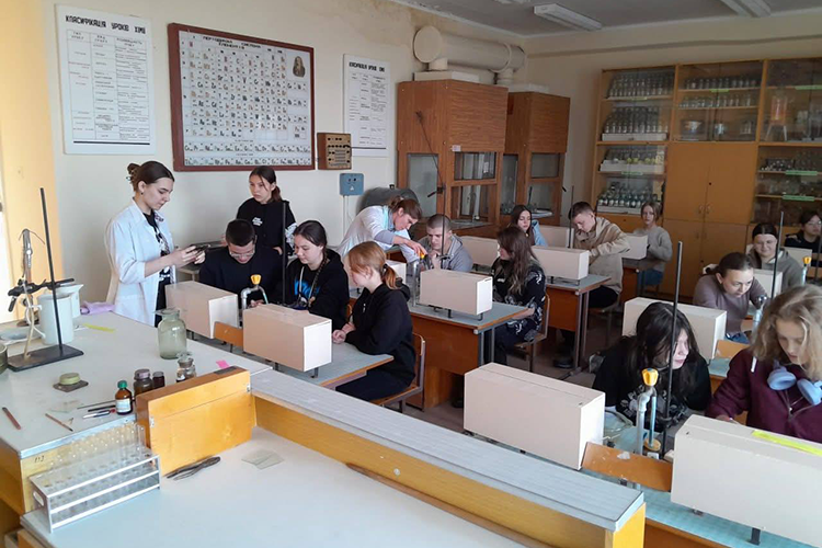 Заняття з хімії на тему: «Кисень та його властивості» проводила доцент, завідувачка кафедри хімії та наноматеріалознавства Юлія Шафорост. На занятті учні одержували кисень у лабораторних умовах, а потім досліджували його властивості, спалюючи прості речовини в середовищі чистого O₂. Діти спостерігали, що в кисні горіння відбувається значно яскравіше, ніж у повітрі. Заняття дозволило коротко опанувати теорію та одразу закріпити її лабораторними дослідами. Асистувала на занятті старший лаборант Людмила Гвоздик.