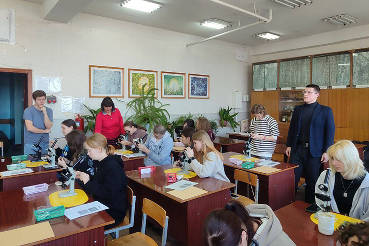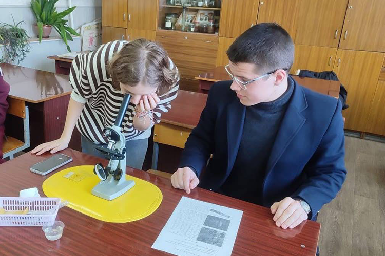Заняття з ботаніки на тему «Водорості водойм України» проводила доцент кафедри агрономії, біології та екології Вікторія Осипенко. Учні ознайомилися з особливостями будови та життєдіяльності найбільш розповсюджених представників відділів Зелені та Діатомові водорості. Власноруч виготовляли тимчасові мікропрепарати хлорели, кладофори, спірогіри та вольвокса розглядали постійні мікропрепарати вольвокса, спірогіри та діатомових водоростей, гербарій водоростей, прослухали добірку цікавих новин про практичне значення водоростей. Асистували у проведенні заняття старший лаборант Юлія Компанієць та студенти-біологи Денис Куцик і Влад Харченко.