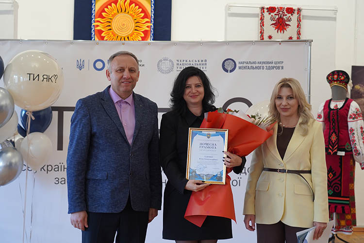 За особливі досягнення у розбудові екосистеми в межах Всеукраїнської програми ментального здоров’я «Ти як?» та з нагоди професійного свята Олександр Шамрай вручив відзнаку Обласної військової адміністрації Юлії Сіденко, директорці ННЦ ментального здоров’я Черкаського національного.