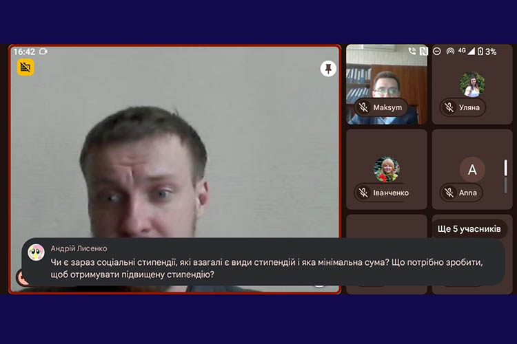 Також під час онлайн-зустрічей порушували питання соціального забезпечення студентів. Зокрема, майбутніх вступників цікавили умови отримання соціальної стипендії. Університет роз’яснював, що така стипендія призначається студентам пільгових категорій відповідно до чинного законодавства, і для її оформлення необхідно після зарахування подати відповідний пакет документів, що підтверджує право на отримання цієї допомоги.