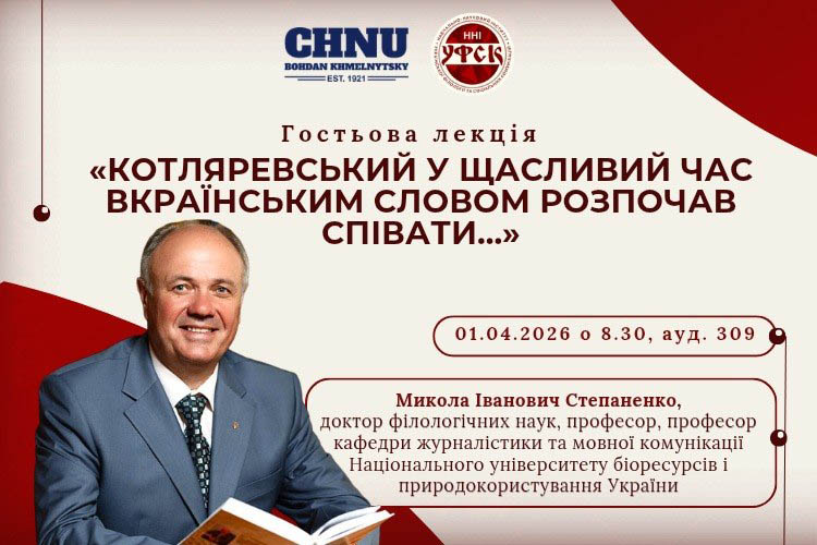 В ННІ української філології та соціальних комунікацій Черкаського національного університету імені Богдана Хмельницького 1 квітня 2026 року відбулася гостьова лекція на тему «Котляревський у щасливий час вкраїнським словом розпочав співати…»