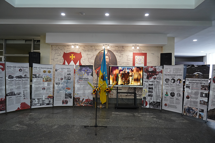 Виставка, створена Українським інститутом національної пам'яті (УІНП) на замовлення Міністерства культури та інформаційної політики, є потужним інформаційним фронтом. Раніше цю експозицію бачили жителі Берліна, Бамберга та інших європейських міст. Сьогодні ж вона нагадує академічній спільноті Черкас про страшні руйнування Маріуполя та Бучі, про героїчний опір та про те, що ця війна — це битва за спільні європейські цінності.