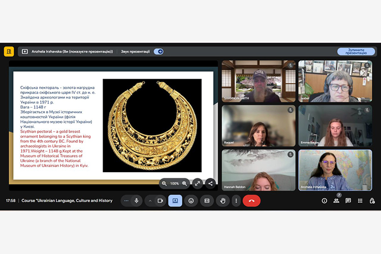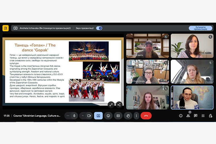 Дистанційний навчальний курс розробила і викладала з 6 жовтня до 9 грудня 2025 року доцентка кафедри всесвітньої історії та міжнародних відносин Анжела Іржавська. Навчальний інтенсив був спрямований на ознайомлення іноземних студентів та викладачів з історією, культурою, традиціями та звичаями України, навчання початковому рівню володіння українською мовою, формування уявлення про українську національну ідентичність. Слухачі курсу із захопленням і великим інтересом сприймали інформацію та засвоювали матеріал навчальних модулів. Атмосфера спілкування з учасниками курсу була особливою: вражені стійкістю українського народу в умовах війни, вони висловлювали щиру та всебічну підтримку Україні в боротьбі проти агресора.