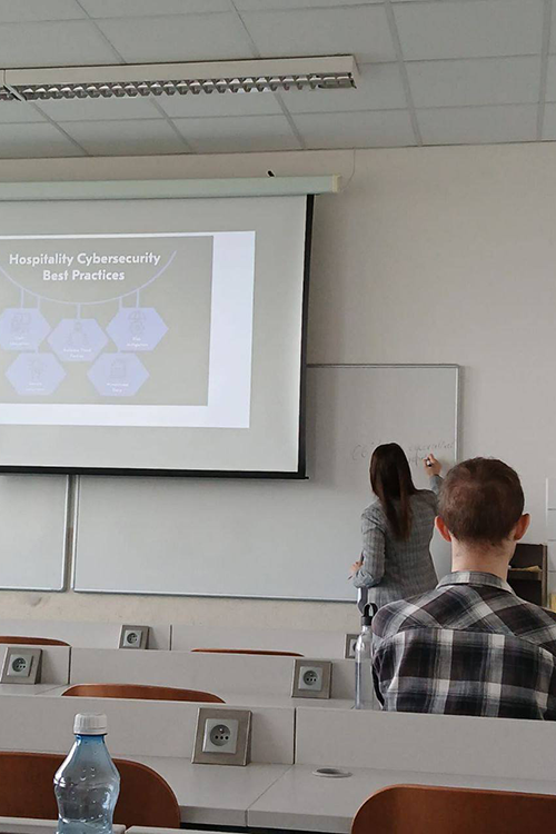 У межах співпраці з VŠE Вікторія у жовтні прочитала магістрантам авторський курс «Security in the Hospitality», який викладала англійською мовою. Програма курсу охоплювала ключові аспекти безпеки в індустрії гостинності: від аналізу сучасних ризиків та вразливостей у готельно-ресторанному бізнесі до практичних методів управління кризовими ситуаціями. Значну увагу було приділено міжнародним стандартам безпеки, політикам захисту персональних даних, протоколам реагування на надзвичайні події, кібербезпеці, а також системам забезпечення фізичної, технологічної та соціальної безпеки в готелях і ресторанах.