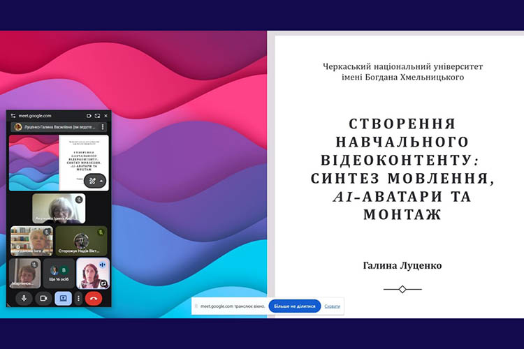 У Черкаському національному університеті імені Богдана Хмельницького 31 березня відбувся онлайн-тренінг для науково-педагогічних працівників на тему «Створення навчального відеоконтенту: синтез мовлення, AI-аватари та монтаж».