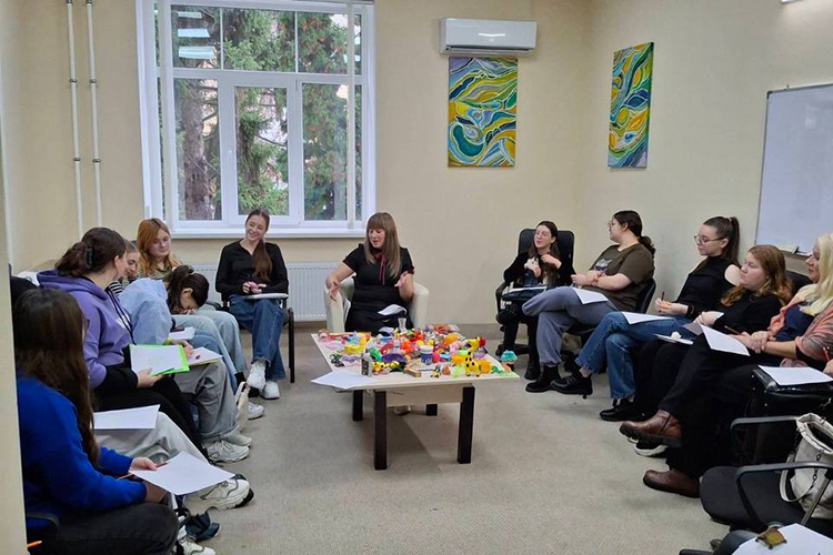 Директорка ННЦ ментального здоров'я Черкаського національного університету імені Богдана Хмельницького Юлія Сіденко провела для студентів першого курсу заняття на тему «Техніки турботи про психічне здоров'я».