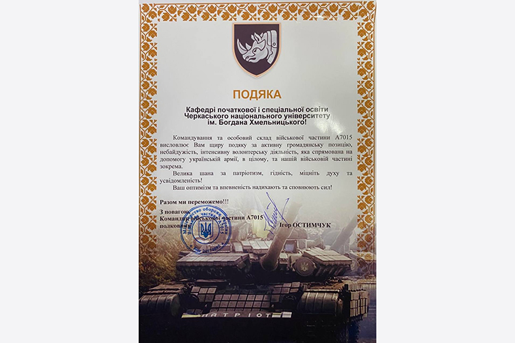 До Дня Збройних Сил України кафедра початкової і спеціальної освіти Черкаського національного університету імені Богдана Хмельницького організувала благодійний збір солодощів для українських військових.