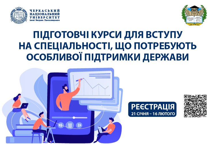 Черкаський національний університет імені Богдана Хмельницького оголошує про початок реєстрації на підготовчі курси для вступу на спеціальності, що потребують особливої підтримки держави.