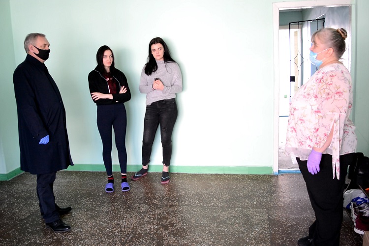 Сьогоднішнє інспектування показало, що рішення, які ми прийняли, працюють. 224 студенти живуть у гуртожитках — ті, хто працює, і студенти-іноземці. Ми про всіх піклуємося, особливо про дітей-сиріт. Видаємо маски, міряємо температуру.