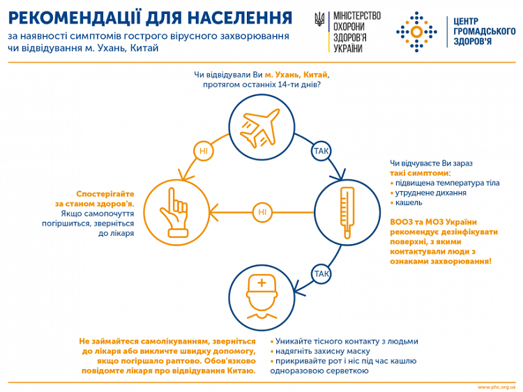 Просимо не займатися самолікуванням. При наявності симптомів зверніться до лікаря або викличте швидку допомогу, якщо погіршало раптово. Обов'язково повідомте лікаря про відвідування Китаю.