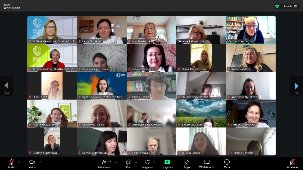 Викладачі кафедри німецької філології Черкаського національного університету імені Богдана Хмельницького Леся Овсієнко, Анастасія Ришкова та першокурсники другого магістерського рівня вищої освіти ОП «Мова і література (німецька, англійська)» відвідали лекцію професорки Maріон Грайн, керівниці магістерської програми «Німецька мова як іноземна мова / Німецька мова як друга мова» з університету Йоганна Гутенберга (Майнц, Німеччина)