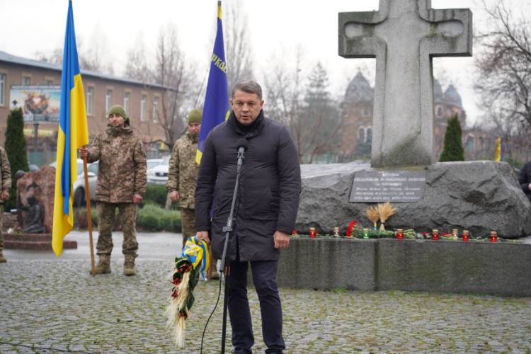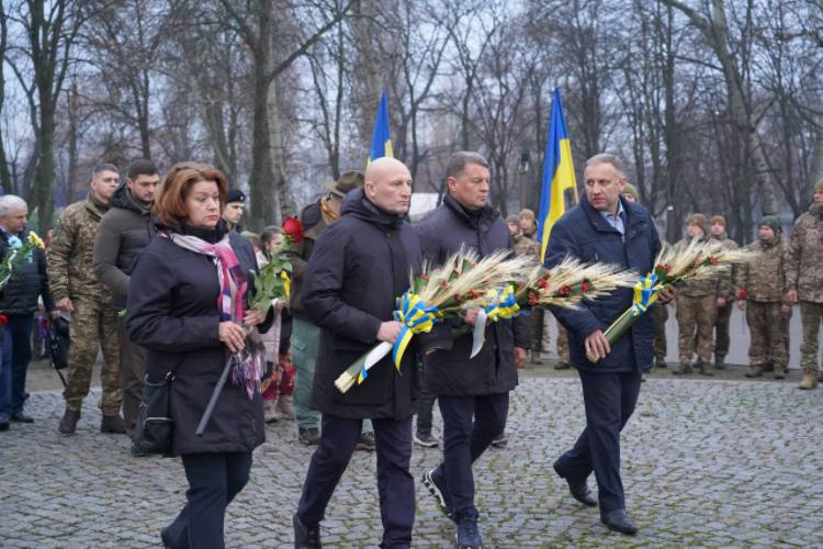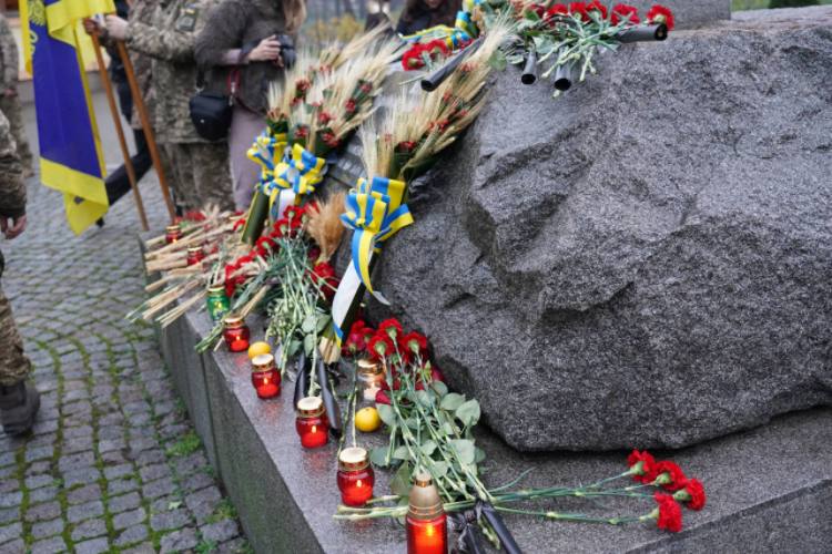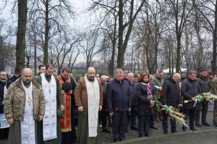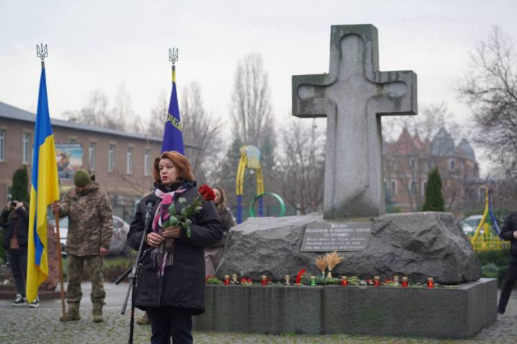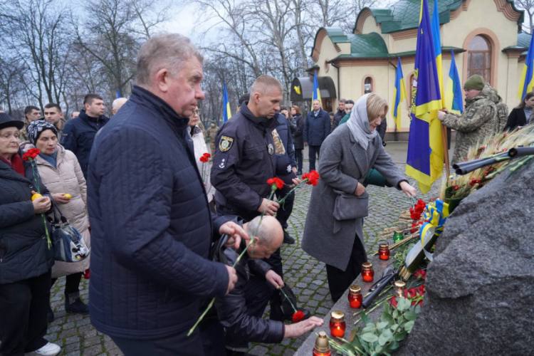 У Соборному парку Черкас біля пам’ятного знака жертвам голодоморів та політичних репресій зібралися освітяни Черкас, представники міської й обласної влади, військові, духівництво.