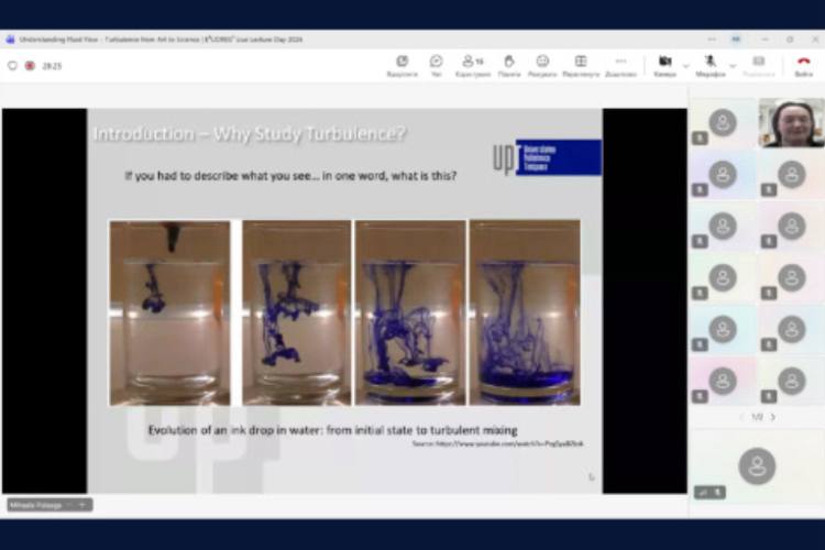 Ще одну лекцію представила Міхаела Післеага, асистентка Політехнічного університету Тімішоари (Румунія). Її виступ був присвячений явищу турбулентності рідин — складному фізичному процесу, який досліджується на перетині науки, математики та візуального аналізу.