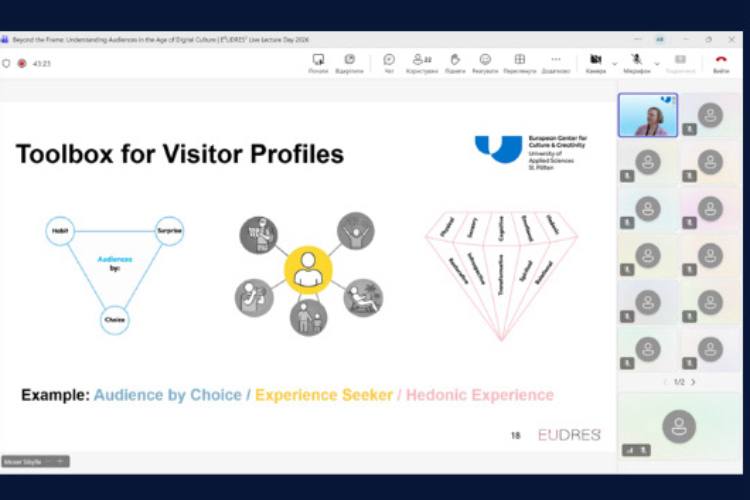 Однією з них стала лекція докторка Сібілла Мозер, керівниці «European Center for Culture & Creativity» в Університеті прикладних наук Санкт-Пельтена (Австрія). У своєму виступі вона розглянула питання поведінки аудиторії в музеях, на виставках та об’єктах культурної спадщини.