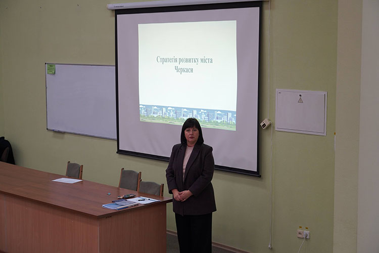 Для студентів ННІ економіки і права Черкаського національного університету імені Богдана Хмельницького 2 грудня 2025 року лекцію на тему «Стратегія розвитку міста Черкаси» провела директорка департаменту економіки та розвитку м. Черкаси Ірина Удод.