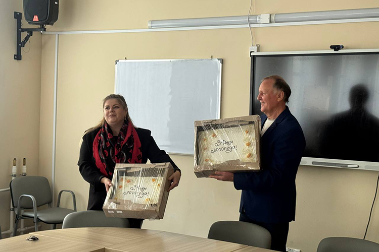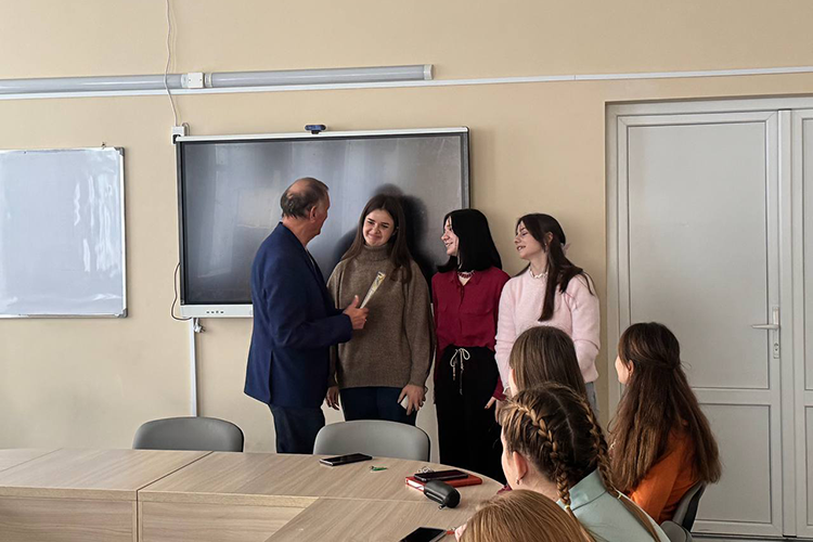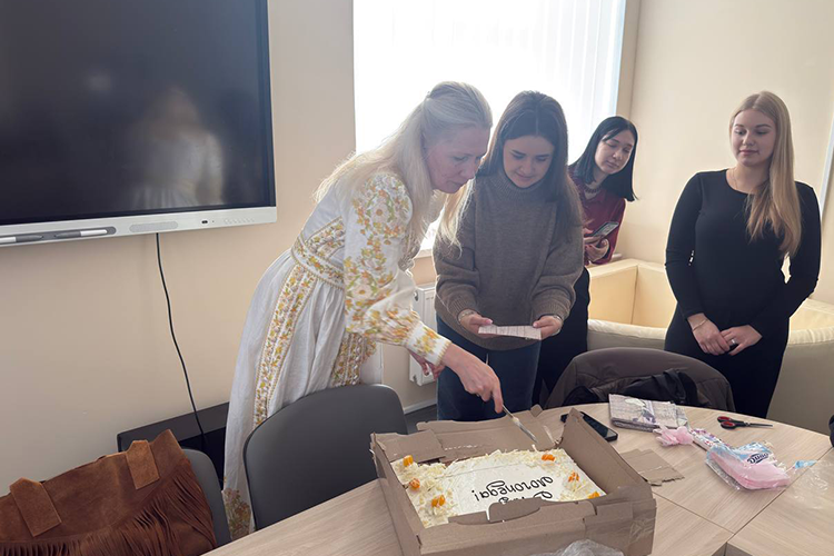 А завідувач кафедри початкової і спеціальної освіти Тетяна Зорочкіна подарувала від усього колективу кафедри солодощі, побажавши натхнення і нових творчих звершень.