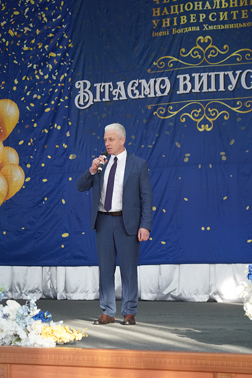 Перший проректор ЧНУ Василь Мойсієнко, вітаючи випускників ННІ педагогічної освіти, соціальної роботи і мистецтва, підкреслив особливий зв'язок із цим підрозділом та подякував усім за стійкість: