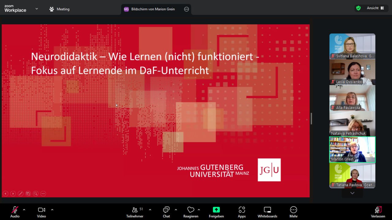Тема розмови — «Нейродидактика — як (не) функціонує навчання — фокус на учнях на занятті з німецької мови як іноземної».