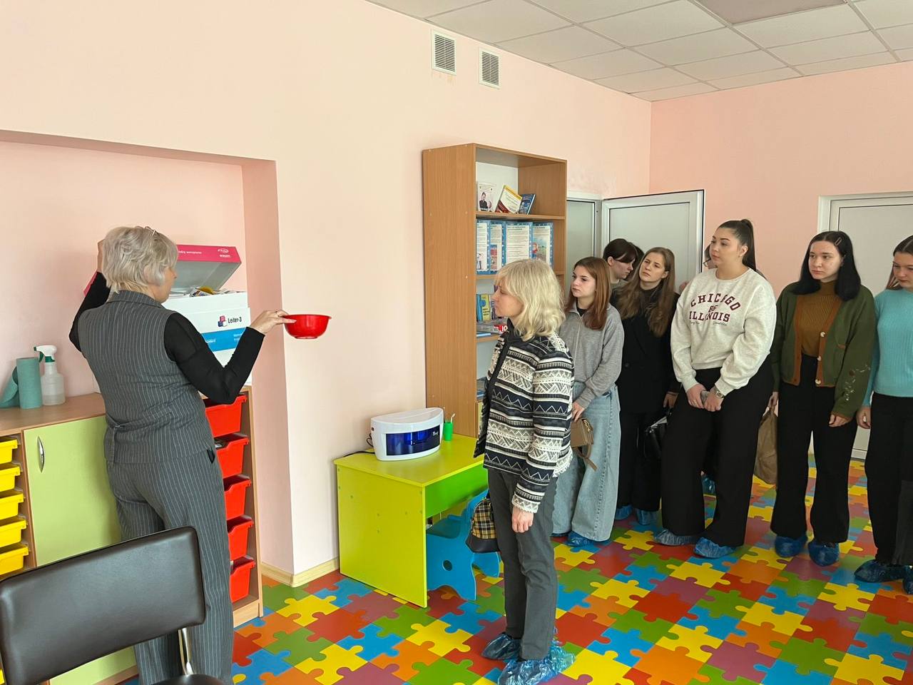 Директор КУ «ІРЦ» ЧМР Світлана Скляр провела ґрунтовну екскурсію роботою установи, детально зупинившись на організації діяльності центру та особливостях проведення комплексної оцінки розвитку дітей з ООП. Особливу увагу було приділено діагностуванню мовленнєвого розвитку, аналізу логопедичних карт та інструментам, які використовують фахівці центру. Студенти мали змогу побачити сучасний діагностичний інструментарій та стандартизовані методики, що застосовуються у практиці консультантів ІРЦ.