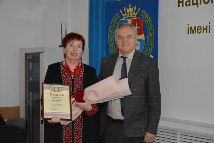 Голова вченої ради привітав з днем народження доцента кафедри агрономії, біології та екології Вікторію Осипенко. З цієї нагоди та враховуючи понад 30-річну сумлінну науково-педагогічну роботу в університеті, її нагороджено Подякою ректора університету, медаллю «За розбудову університету» і грошовою премією.