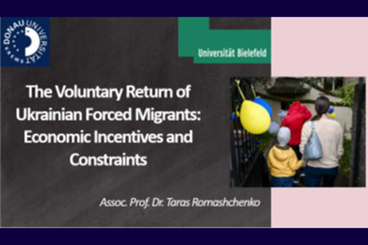 У своїй доповіді під назвою «Добровільне повернення українських вимушених мігрантів: економічні стимули та обмеження» Тарас Ромащенко не лише висвітлив окремі соціально-економічні стимули та виклики, пов’язані з поверненням українських біженців, а також надав корисні рекомендації для посадовців, зокрема в таких країнах прийому наших біженців, як Австрія та Німеччина. Крім того, здійснений аналіз прагнень українців щодо добровільного повернення додому може бути цінним і для інших країн в контексті конфліктів, що тривають, та постконфліктного відновлення.