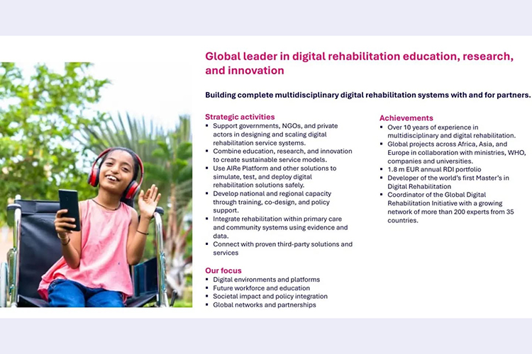 Організаторами зустрічі стали проректор з наукової, інноваційної та міжнародної діяльності Олександр Спрягайло та Катаріна Корнілофф, провідний науковий співробітник, докторка філософії Інституту реабілітації, Університету прикладних наук JAMK. Під час зустрічі обговорили роль цифрових технологій у розробленні нових підходів в реабілітації. Сучасний світ переживає період глибоких соціальних, технологічних та гуманітарних трансформацій. Зростання кількості травм, хронічних захворювань, психоемоційних розладів, а також наслідки збройних конфліктів і надзвичайних ситуацій суттєво підвищують потребу в ефективній реабілітації як військових, так і цивільних осіб. Традиційні підходи до реабілітації, хоча й залишаються важливими, вже не завжди відповідають масштабам і складності сучасних викликів.