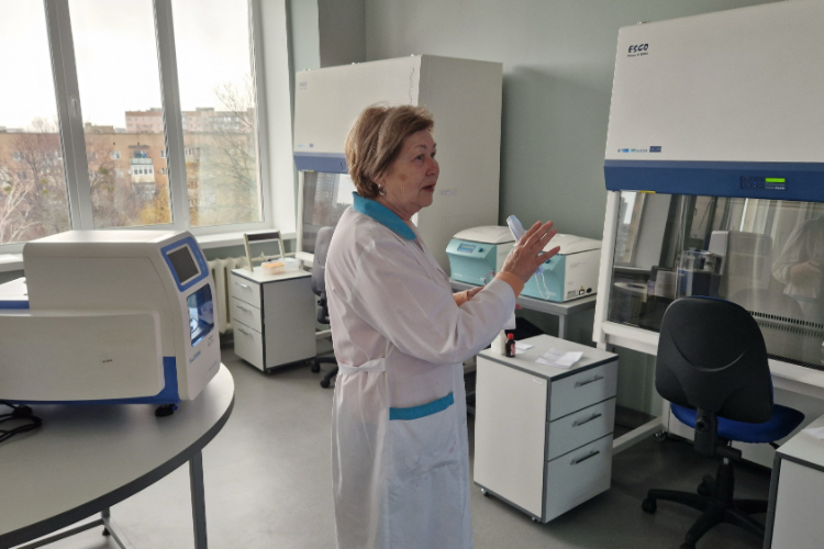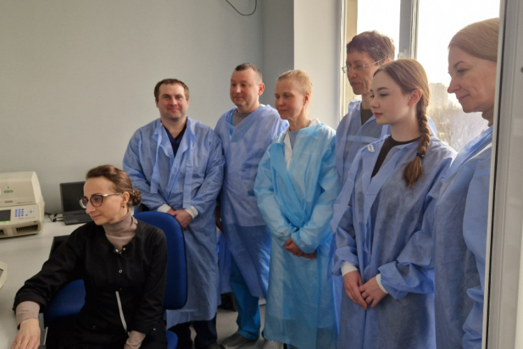 Завідувач лабораторії, Наталія Федорченко, ознайомила здобувачів-магістрантів з організацією лабораторного відділення, розповіла про призначення основних та допоміжних приміщень, особливості прийому та обліку біоматеріалу.
