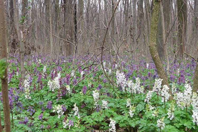 Найбільше первоцвітів можна побачити у лісах Черкащини, особливо в дубових і грабових. У них ростуть підсніжники, проліски, ряст, анемона дібровна, фіалка запашна. Вони часто утворюють цілі квіткові килими на лісових галявинах, узліссях, у балках та ярах.