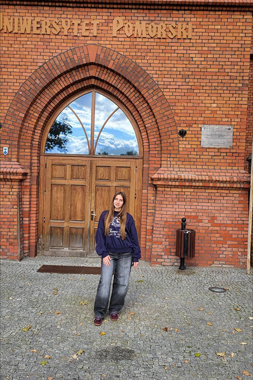 Цей семестр в Поморському університеті навчається Дарина Коломієць, студентка 2 курсу ННІ іноземних мов ОП «Переклад (перша – англійська)». Програма семестрового обміну дає змогу студентам поглибити професійні знання, удосконалити володіння іноземними мовами та здобути досвід міжкультурної комунікації.