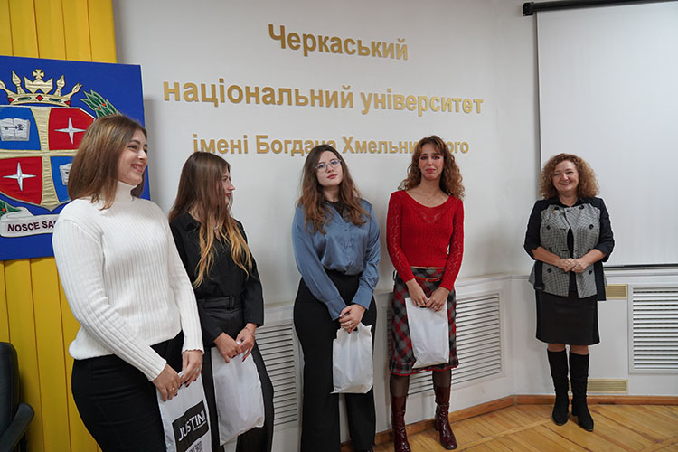 Представниця Ротарі-клубу РК «Черкаси-Синергія» Тетяна Очеретяна, випускниця Черкаського національного університету імені Богдана Хмельницького відзначила студенток університету за волонтерську діяльність.