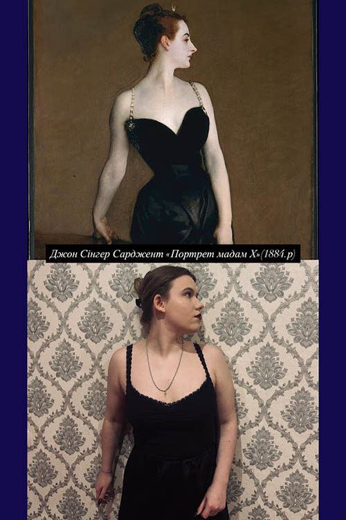 — Я обрала повторити картину «Портрет мадам X», тому що вона є яскравим прикладом витонченого портретного мистецтва та справляє сильне емоційне враження. Мене привабила її елегантність, стримана колірна гама та загадковий образ жінки, який одночасно виглядає впевнено і відсторонено. Ця картина цікава тим, що передає не лише зовнішність моделі, а і її характер, атмосферу епохи. Особливу увагу я звернула на гру світла і тіні, контраст між темною сукнею та світлою шкірою, а також на позу, яка додає образу вишуканості та драматизму, — розповіла студентка 3-А курсу Вікторія Галич.