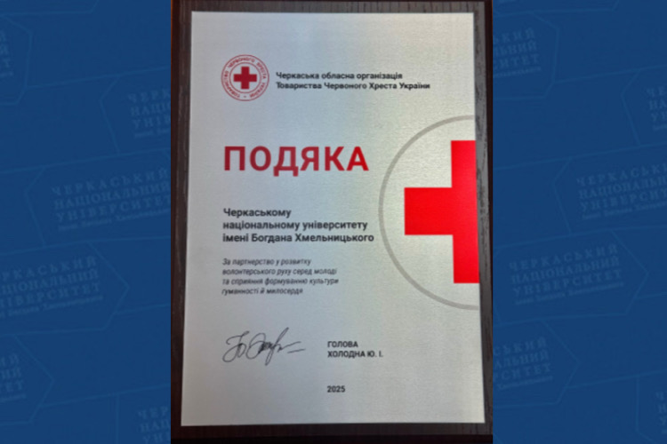 Черкаська обласна організація Товариства Червоного Хреста України відзначила Черкаський національний університет імені Богдана Хмельницького подякою.