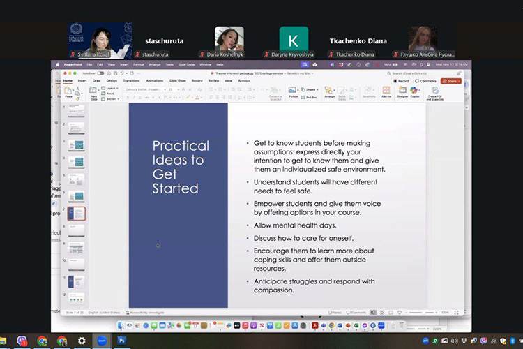 Лекція викликала значний інтерес серед студентів і викладачів, адже запропоновані підходи є вкрай важливими для реалізації інтернаціоналізації майбутніх педагогів. Саме такі практики формують здатність учителя працювати з індивідуальними потребами учнів, підтримувати їх у складних ситуаціях і створювати безпечне та результативне освітнє середовище.