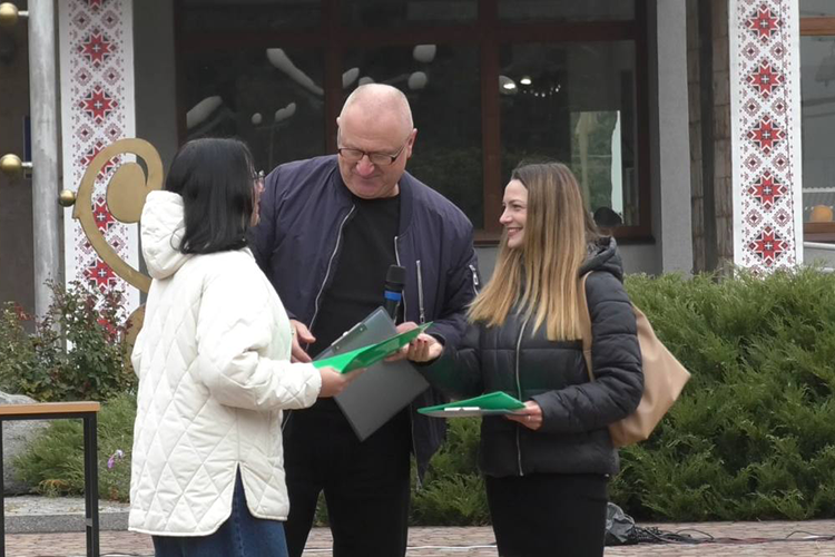 Результати конкурсу відео, який став творчим випробуванням для першокурсників, оголосив Ігор Погрібний. Від університетської профспілки він вручив сертифікати для придбання штативів до відеокамер усім учасникам.