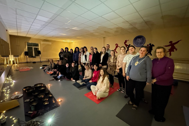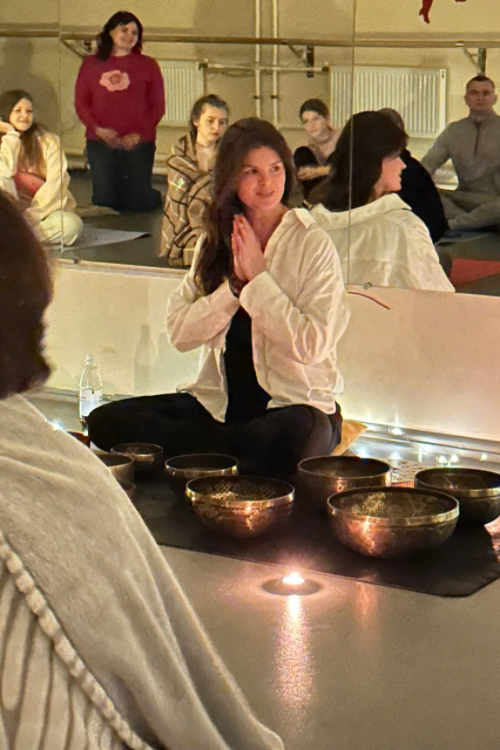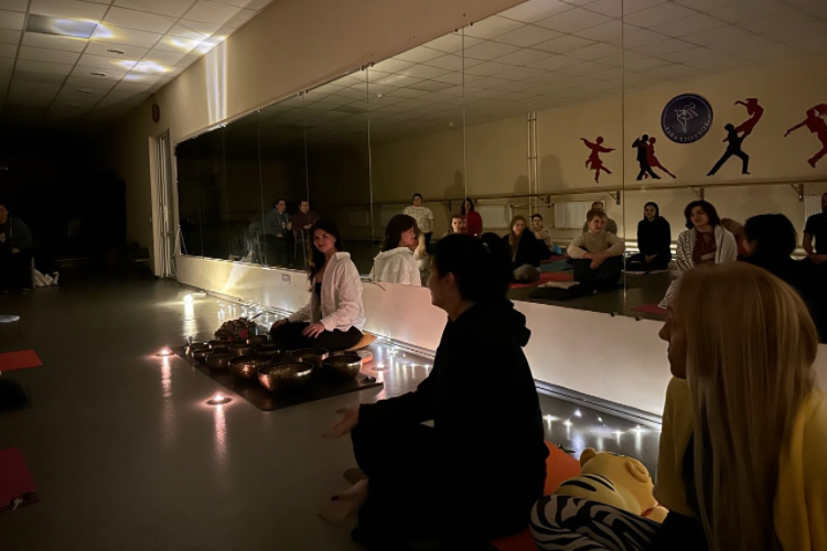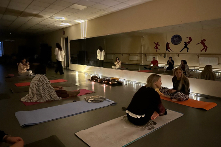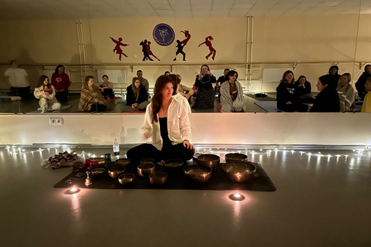 Практику, що поєднує тілесну роботу та звукову терапію, провела майстерка енергетичних практик Анна Новак. Основний сеанс тривав близько 50 хвилин. Упродовж цього часу учасники перебували у стані глибокої релаксації, поступово занурюючись у відчуття внутрішньої тиші. Особливої атмосфери додавав супровід співочих чаш із Непалу й Тибету. Протягом заняття тренерка допомагала присутнім концентрувати увагу на диханні, тілесних та емоційних відчуттях.
