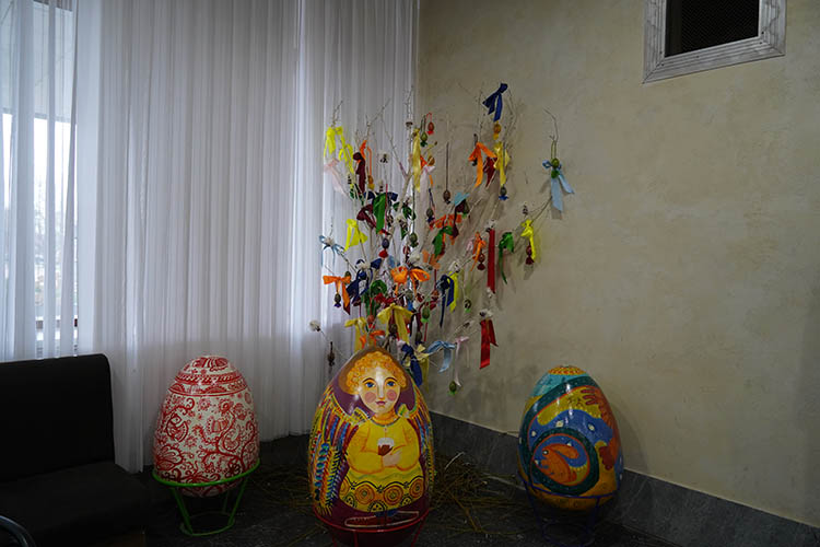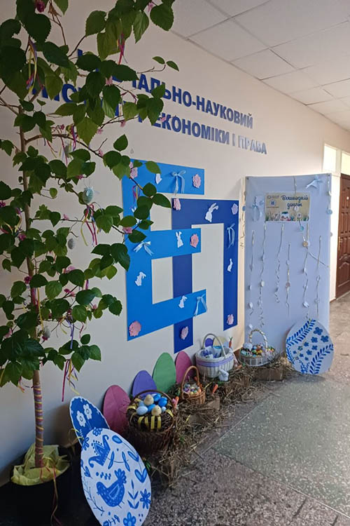 У Черкаському національному університеті імені Богдана Хмельницького студенти та викладачі навчально-наукових підрозділів напередодні свята облаштували великодні інсталяції.