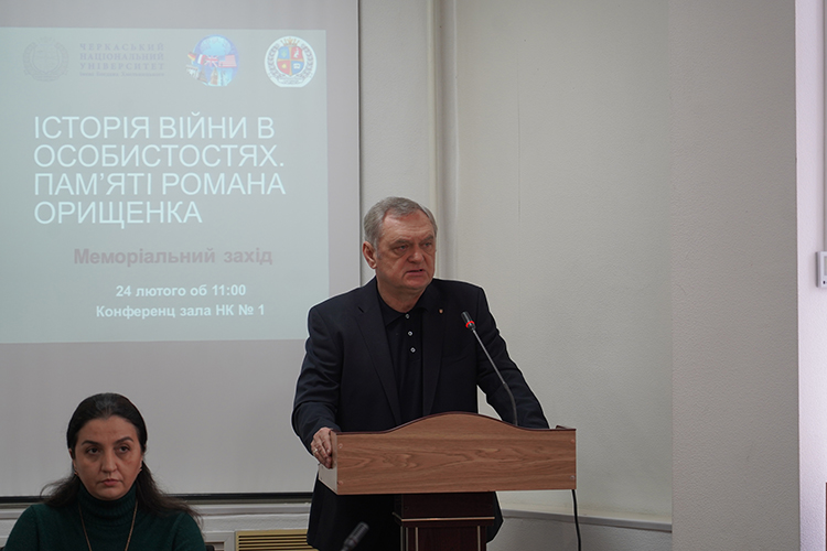 Про державницьку позицію Романа Орищенка та його роботу в органах влади говорили в.о. голови Черкаської обласної ради Роман Сущенко. Вони згадали його роль у Самообороні Майдану та організаторські здібності, які згодом допомогли йому стати ефективним командиром на фронті.